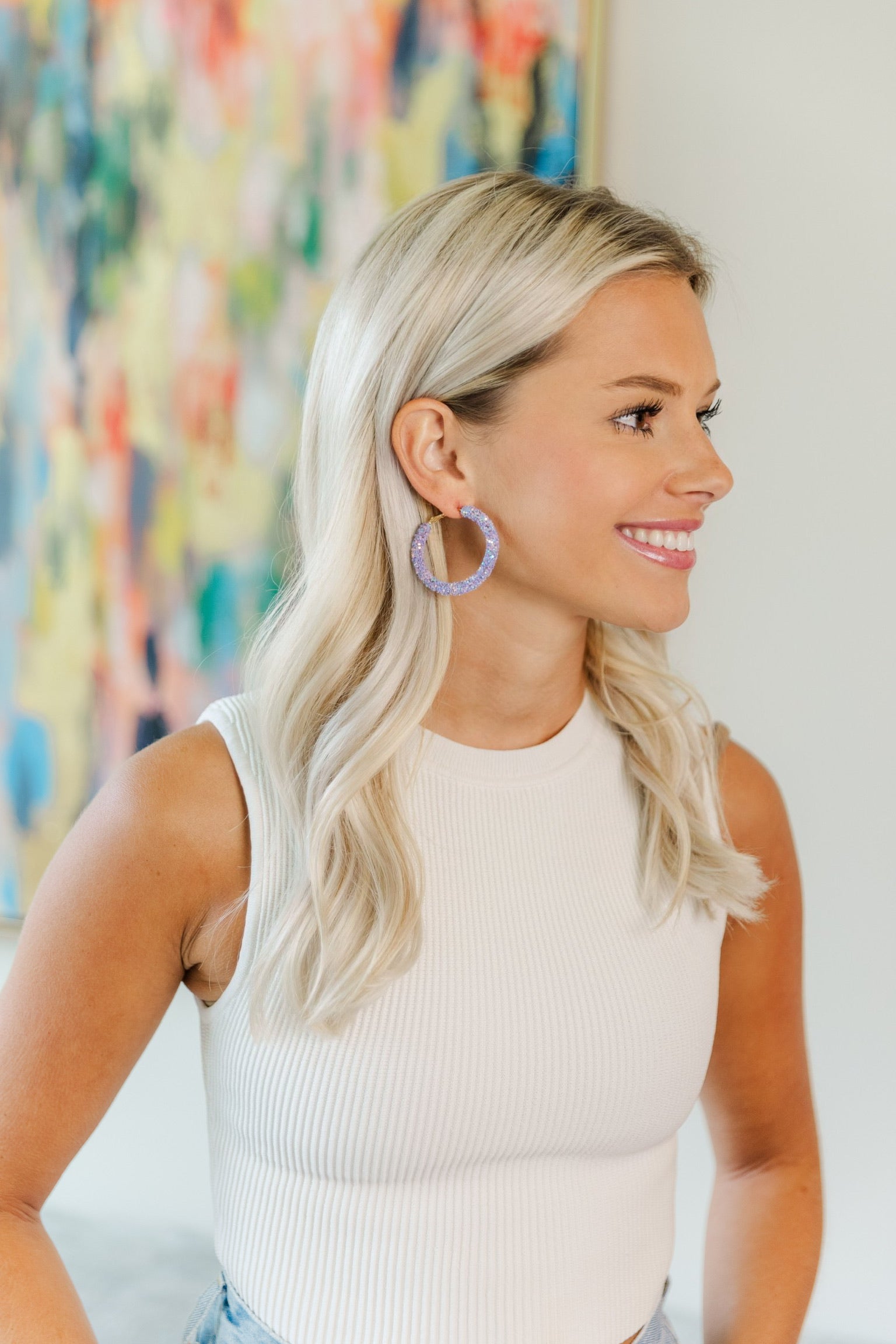 When you need a quick and easy pair of earrings, Our lightweight Glitter Hoops are just right! Add a little Sparkle to any outfit with these babies!