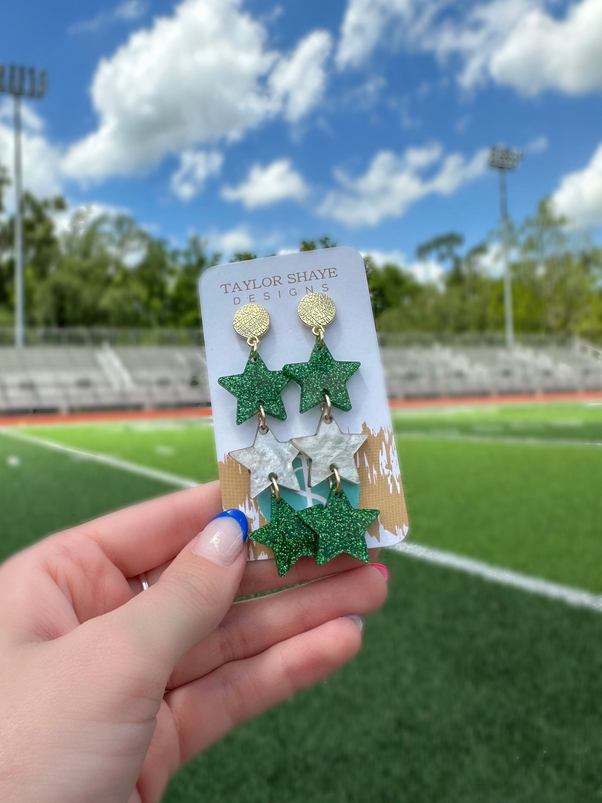 Green Glitter/Shimmer Triple Stars
