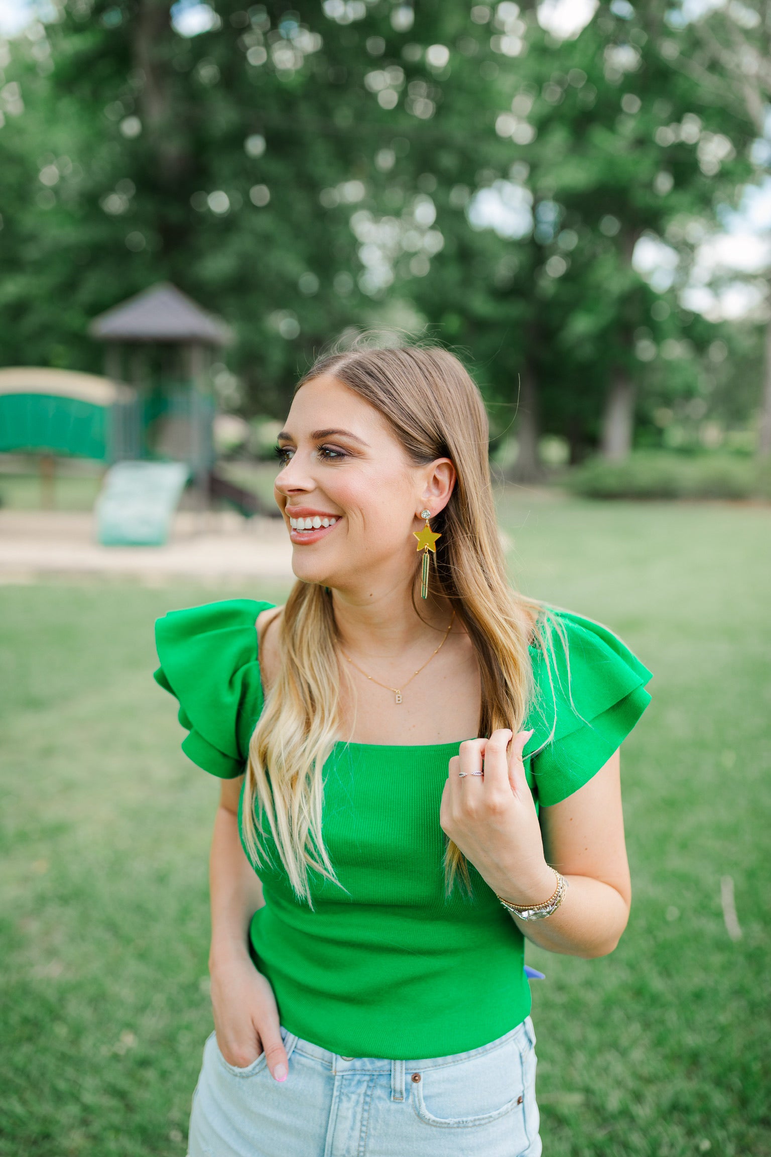 Green/Gold Star Chain Tassels