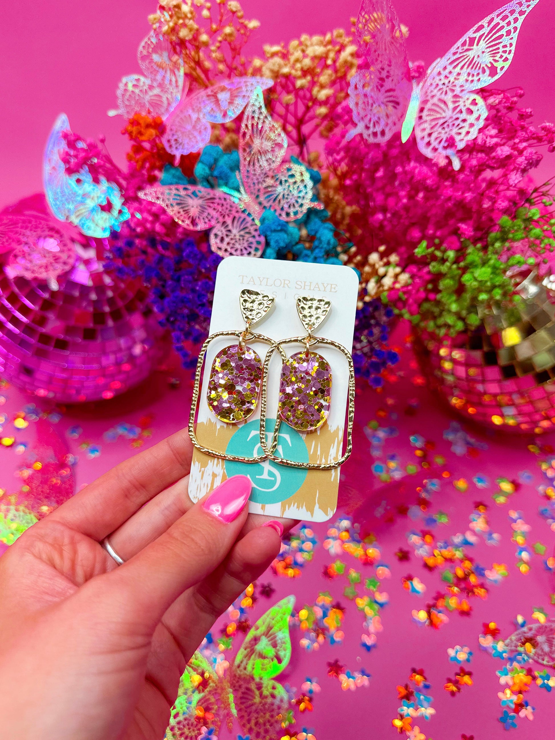 Pink Princess Confetti Oval Hoops