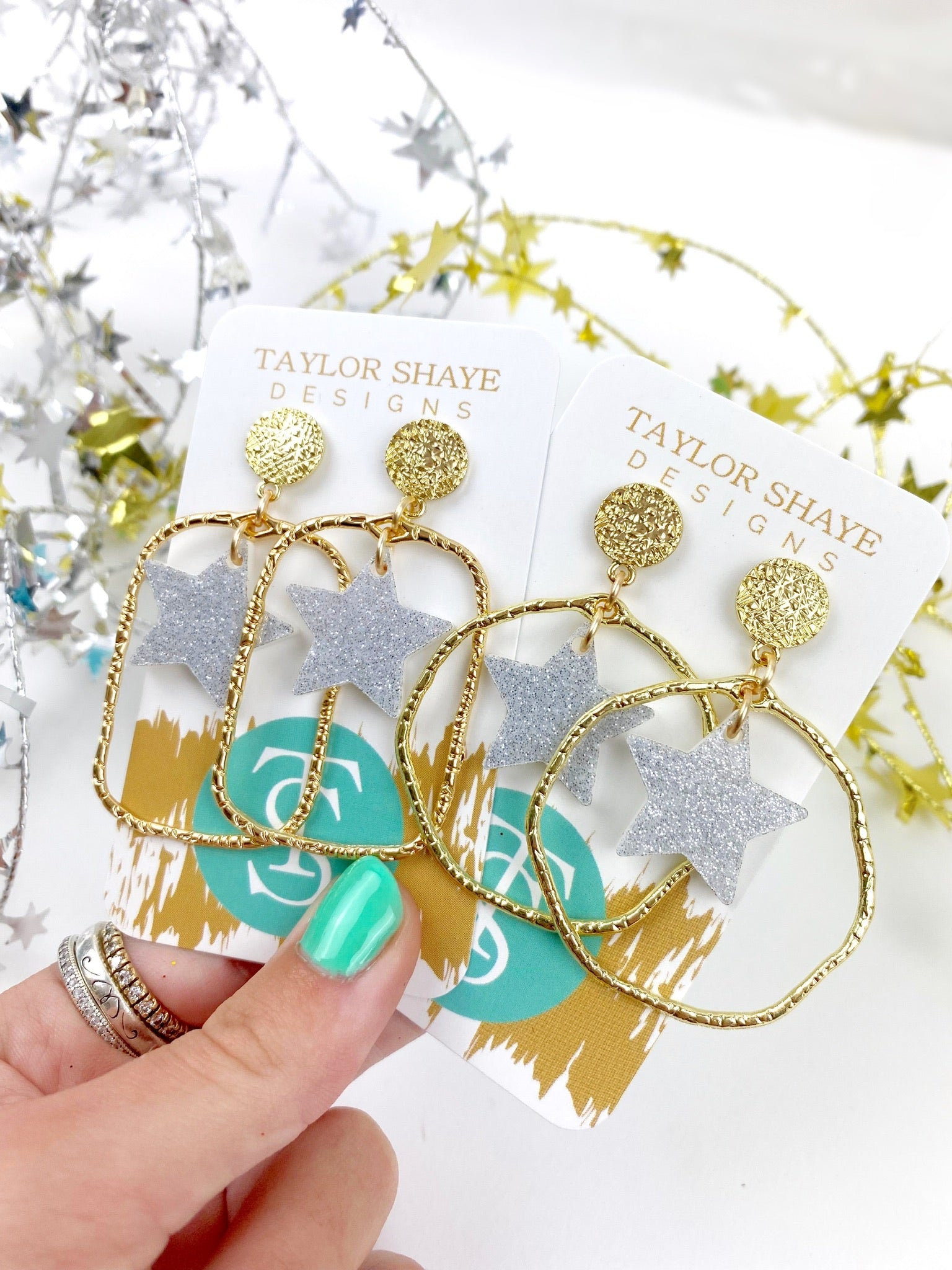 Silver Glitter Star Drop Hoops